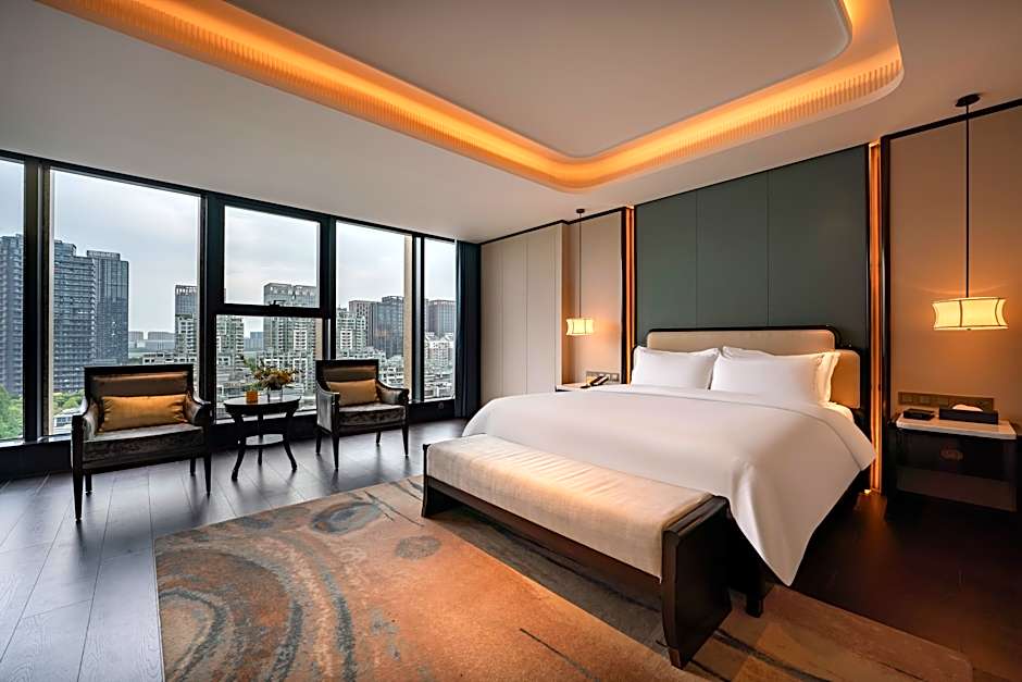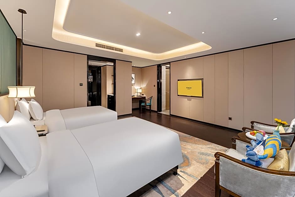 This suite's special feature is the hot tub. The spacious suite provides air conditioning, a mini-bar, as well as a private bathroom featuring a bath and a shower. The suite is furnished with a desk and a seating area and features city views. The unit offers 1 bed.